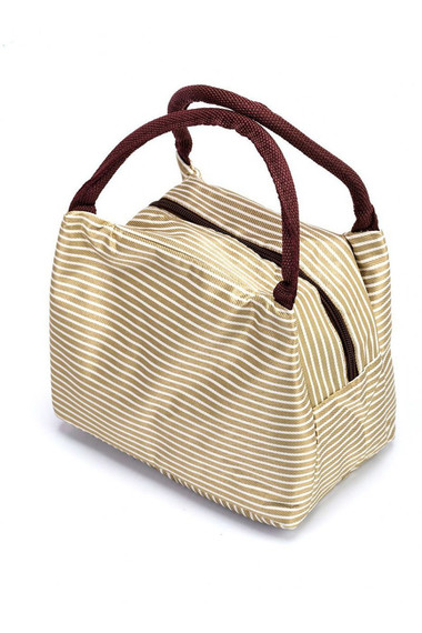 Фото товара 17040, термосумка для ланч-бокса в полоску «горячий обед» бежевая